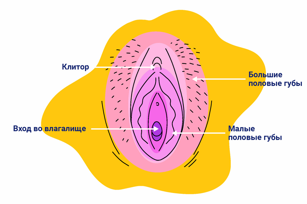 Вульва — это клитор, малые и большие половые губы, преддверие влагалища. Наружные половые органы выполняют несколько функций. Основные: защита от повреждений, микробов, спермы, получение удовольствия. Для этого в наружных половых органах есть жировая ткань, волосяной покров, а также чувствительные нервные окончания.