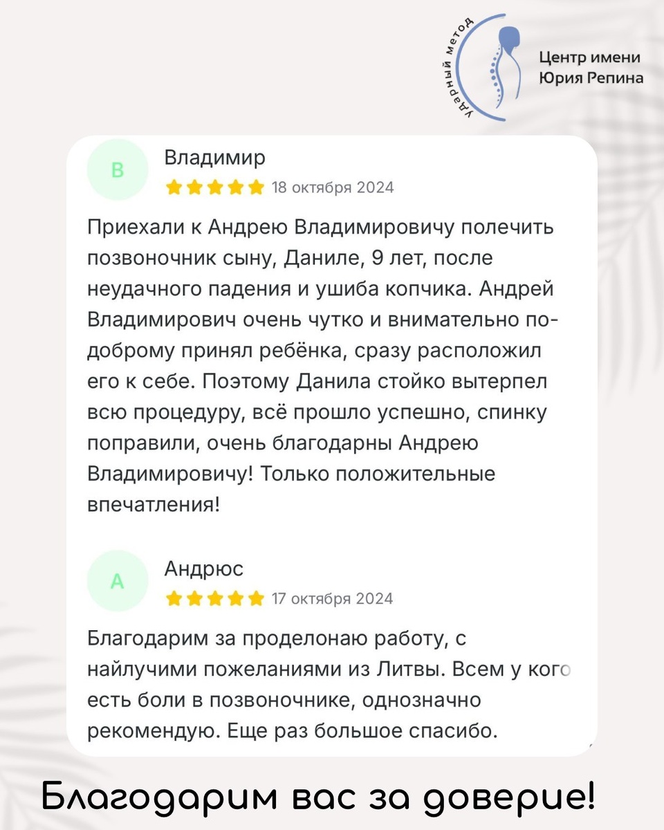 👨⚕ Мы рассказали, кто такой Андрей Владимирович Федин. Теперь — слово тем, кто знает это не по описанию, а по личному опыту. Отзывы — это доверие, к которому мы стремимся. #отзывы@yurirepin