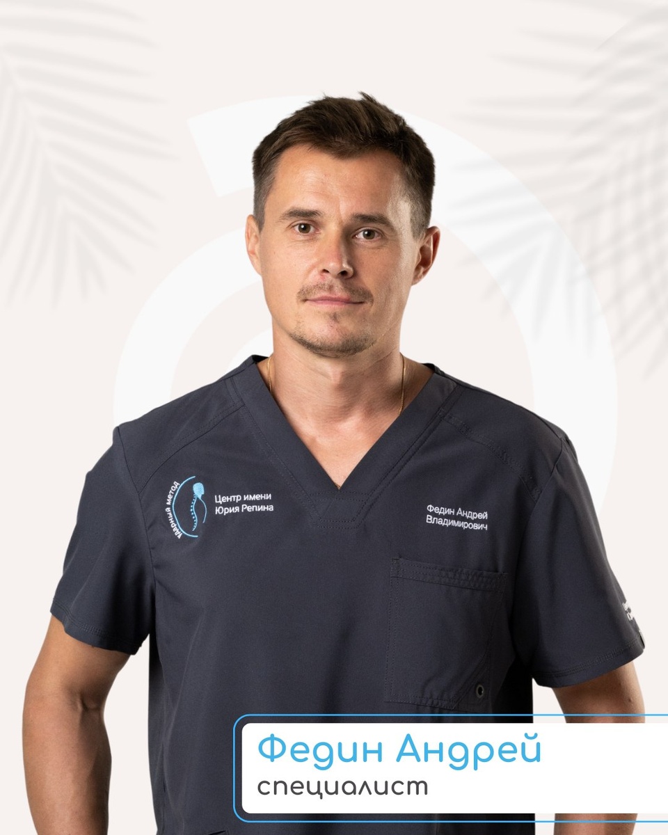 ЗНАКОМЬТЕСЬ: ФЕДИН АНДРЕЙ ВЛАДИМИРОВИЧ Специалист центра имени Юрия Репина в Санкт-Петербурге. С 2019 года помогает людям восстанавливать подвижность и избавляться от боли с помощью уникальной ударной методики Юрия Репина. 📌 Почему стоит записаться именно к нему? Андрей Владимирович — специалист с медицинским образованием, глубоким подходом и спокойной уверенной манерой работы. Он не просто «снимает спазм» — он устраняет первопричину боли, помогая вернуть телу анатомический баланс. Каждый приём проходит с максимальным вниманием и точностью — именно за это пациенты особенно ценят его подход. 🧠 Факты о специалисте: — Более 8 500 пациентов в центре Репина уже получили помощь, а также часть пациентов вне центра — Работает в филиале в Санкт-Петербурге (м. Пролетарская) — Более 550 отзывов с высокой оценкой — В практике — острые и хронические боли, затяжные случаи, травмы, грыжи, последствия стресса — Стаж в восстановлении здоровья с 2017 года 🎓 Образование и опыт: — Медицинское образо