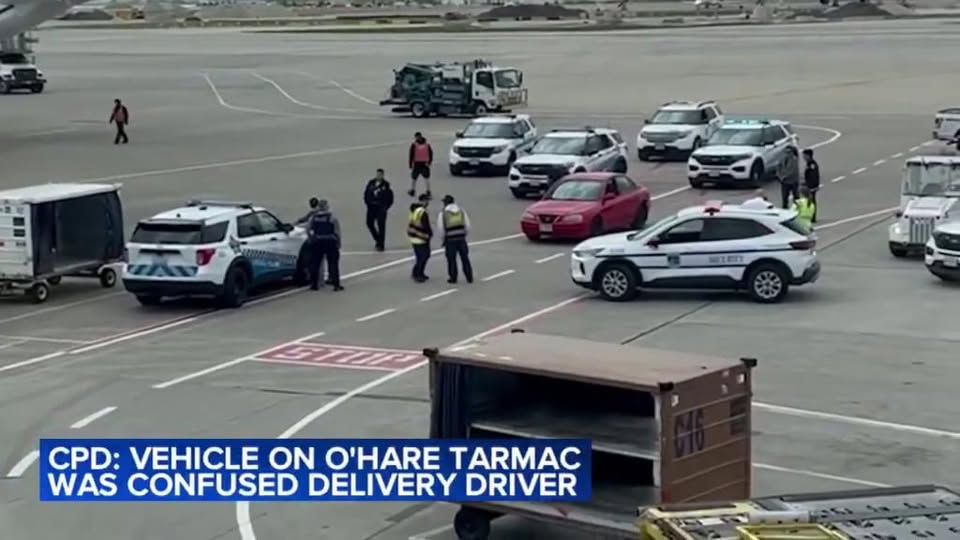 Водитель службы доставки еды случайно заехал в зону ограниченного доступа международного аэропорта О'Хара