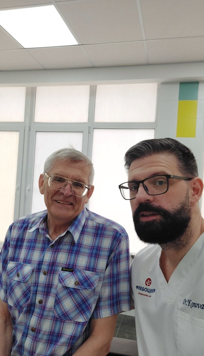 Пациенту 78 лет и он приехал лечить свой варикоз к нам в клинику будучи на отдыхе. Не работал ствол большой подкожной вены и было много притоков на голени. Не стесняйтесь идти к флебологу, варикоз можно вылечить в любом возрасте. Быстро и безболезненно! Варикоз можно вылечить и в отпуске, как Вы видите на примере пациента. ☝️ Выбирайте современные медицинские технологии лечения варикоза и не бойтесь, записывайтесь на консультацию по ссылке.