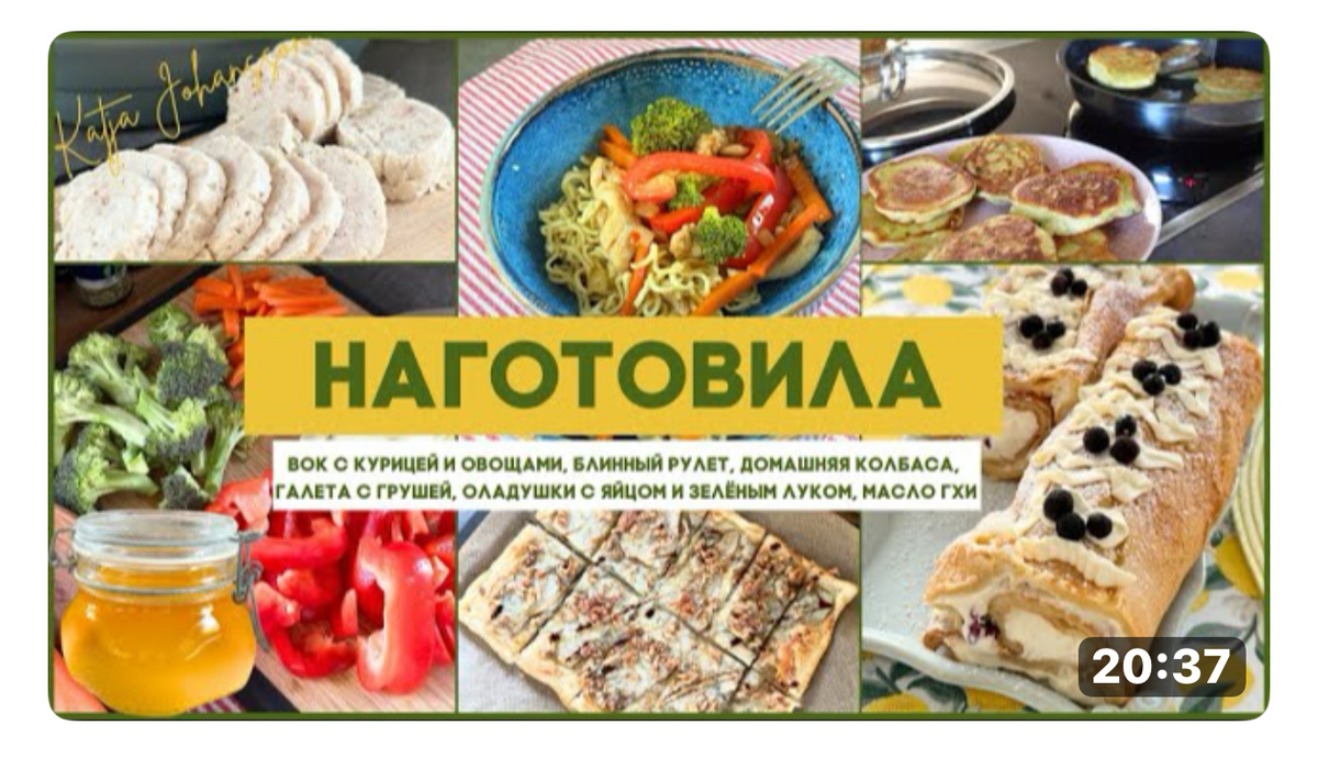 Куриный рулет или «домашняя колбаса» - отличная и здоровая замена покупной колбасе. Полезное масло ГХИ , на котором можно жарить и печь. Вкуснейший ВОК с курицей, овощами и яичной лапшой с азиатскими нотками - готовится очень просто и быстро, придется по вкусу всей семье. Шикарный и простой в приготовлении блинный рулет с кремом и ягодами, ленивые пирожки с яйцом и луком на сковороде и десерт для взрослых к белому вину- галета с грушей, горгонзолой и грецкими орехами. Подробные рецепты всех этих блюд в видео по ссылке: https://dzen.ru/video/watch/681b4dd2e1a3d303329ab0e8