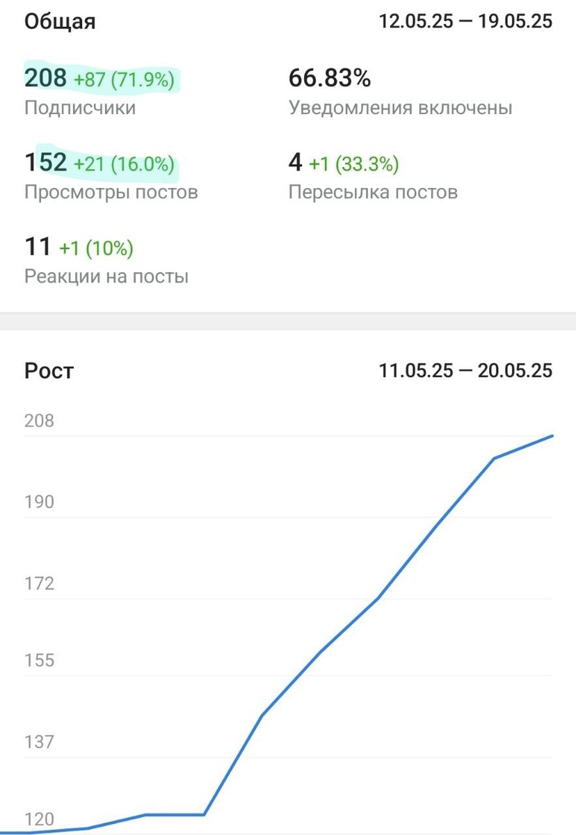 Канал бизнес-клуба растёт по всем фронтам В пятницу публиковал кейс, что запустили трафик — пошли подписчики и заявки в бизнес-клуб по подписке. И вот спустя пару дней уже видим системный рост: вовлечение и охваты, почти +100 новых подписчиков, десятки лидов. Цена подписчика за счёт обучения алгоритмов Яндекса упала до 130 руб., а учитывая, что аудитория — предприниматели с рабочим бизнесом, это более чем норм. Но хотел написать не про это. Главное: мы стартовали, когда в канале было всего ~100 человек А какие частые мифы? Что сначала нужно: 1 нагнать аудиторию, 2 накрутить ботов, 3 поучаствовать в «папках»… И только потом запускать рекламу. На самом деле это не так (или почти не так). Если сделать воронку через лид-магнит (или, как в нашем случае, гнать трафик сразу в закрытый канал), то вашей аудитории без разницы, сколько у вас подписчиков. Для них главное — ценность, которую они получат после подписки. И вот здесь мы очень стараемся — оффер на подписку должен быть очень