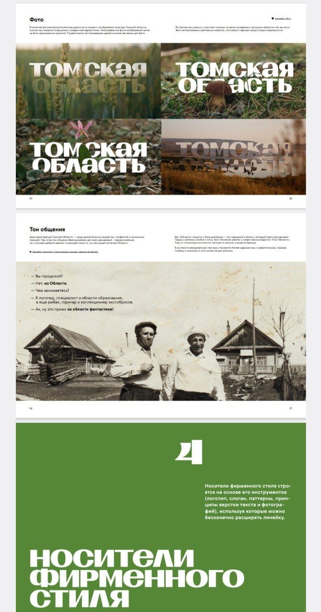 Область тьмы По заказу областной администрации разработан новый брендбук Томской области. Стоимость неизвестна, а вот наполнение впечатляет. Картинки красивые, основной цвет от веселенького зеленого лайма перекочевал в сторону солидного бильярдного сукна. Так, действительно, поблагороднее выглядит. Остальное пусть скажут дизайнеры, теперь про вербальное наполнение.