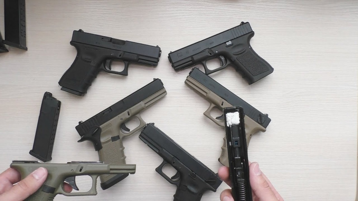 1. **Материалы и конструкция** - **Боевой Glock 17**: Рамка из армированного полимера, стальные затвор и ствол. Покрытие Tenifer обеспечивает устойчивость к коррозии и износу. - **Страйкбольный Glock 17**: Полимерная рамка (например, ABS-пластик у East Crane), металлический затвор (часто сталь или сплавы). Некоторые модели, как GHK, используют стальные детали, но с менее прочными покрытиями. Отмечаются проблемы с люфтами и износом направляющих (например, у KJ Works). 2. **Механизмы и функциональность** - **Боевой Glock 17**: Бескурковая ударно-спусковая система (страйкерного типа). Полная автоматизация перезарядки, надежная работа в экстремальных условиях. - **Страйкбольный Glock 17**: Курковая система (например, у KJ Works) или альтернативные УСМ (как у GHK, где спусковой крючок напрямую воздействует на клапан). Имитация blowback (отдача слабее, чем у боевого аналога). Регулируемый хоп-ап для коррекции траектории шаров, но точность ниже (до 20 метров для А4-л