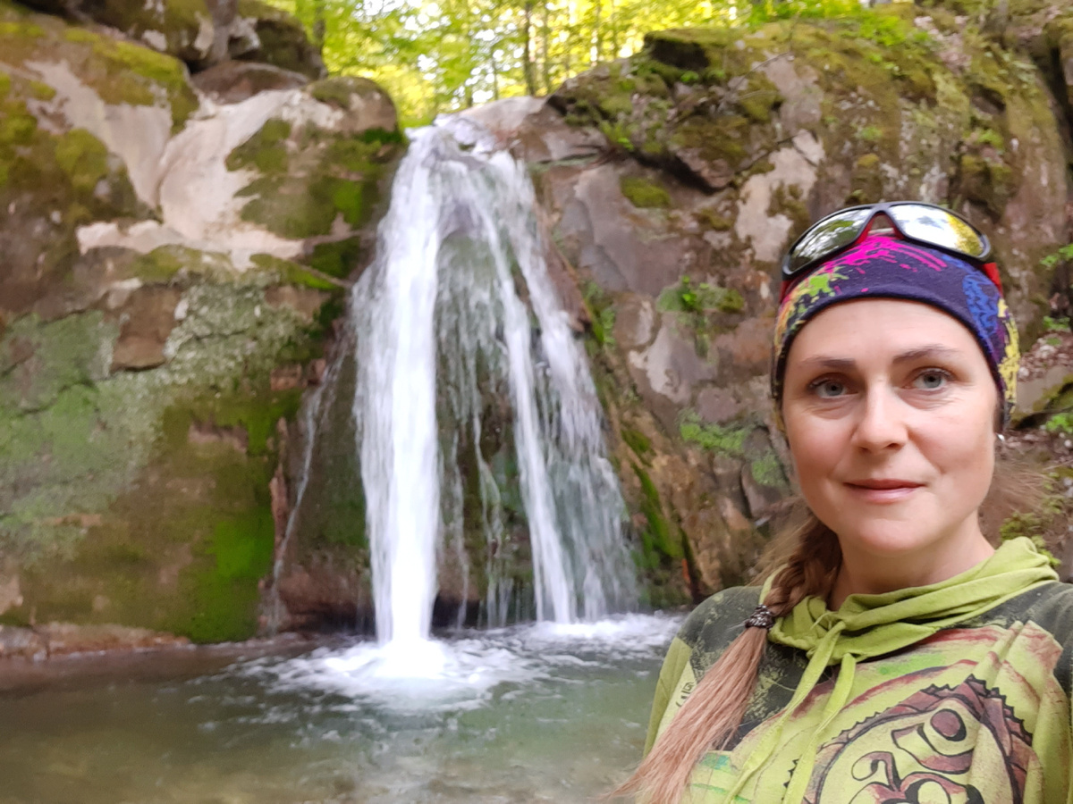 Майская водичка лесного водопада приятно бодрила, холода не чувствовалось, хотя я и пищала на весь лес!