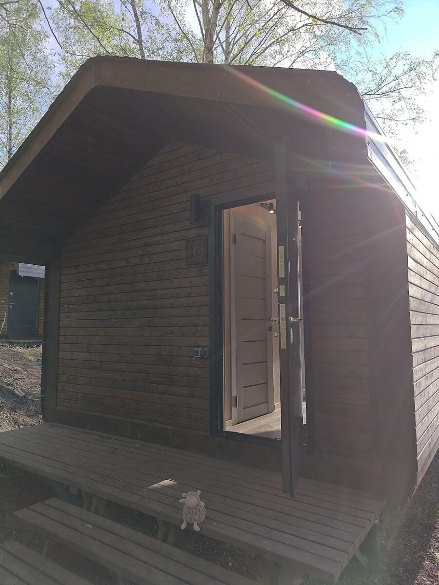 Приехали, заселились, смотрим по сторонам. Барн-хаус #16 стоит прямо у воды — без метафор. Открываешь стеклянную дверь — и сразу терраса. Озеро светится солнечными лучами, внутри светло и без намёка на загородный китч. Всё базовое есть: кровать нормальная, столик, посуда, мини холодильник, зеркало, чайник, кресло, виниловый проигрыватель. Никаких дизайнерских «выкрутасов», зато видно, что продумывали не на коленке. Простые материалы, тёплый свет, нормальная сборка. Это не люкс и не гламур, но здесь удобно. Не надо адаптироваться — можно приезжать и жить. #аномалия