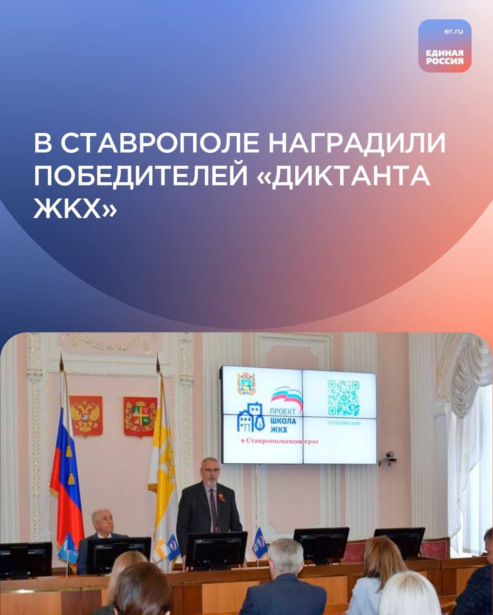 Торжественная церемония награждения активных жителей краевой столицы, показавших лучшие результаты тестирования, состоялась в большом зале заседаний Ставропольской городской Думы. Гостей мероприятия приветствовали спикер городского парламента Георгий Колягин и его заместитель, координатор партпроекта «Школа ЖКХ» в Ставропольском крае Геннадий Тищенко. Победителями «Диктанта ЖКХ» стали участники, набравшие наибольшее количество баллов за минимальное время. В их числе оказался депутат городского парламента Иван Кашурин, правильно ответивший на все вопросы теста. Геннадий Тищенко вручил победителям грамоты федерального проекта «Школа ЖКХ», выразив им благодарность от себя лично и от имени председателя Общественного совета проекта, заместителя председателя Правительства края Игоря Иванова. Региональный координатор проекта также поблагодарил всех, кто помогает продвигать стратегию «Школы ЖКХ» и реализовывать тематические мероприятия в крае, высказал надежду на дальнейшее продуктивное со
