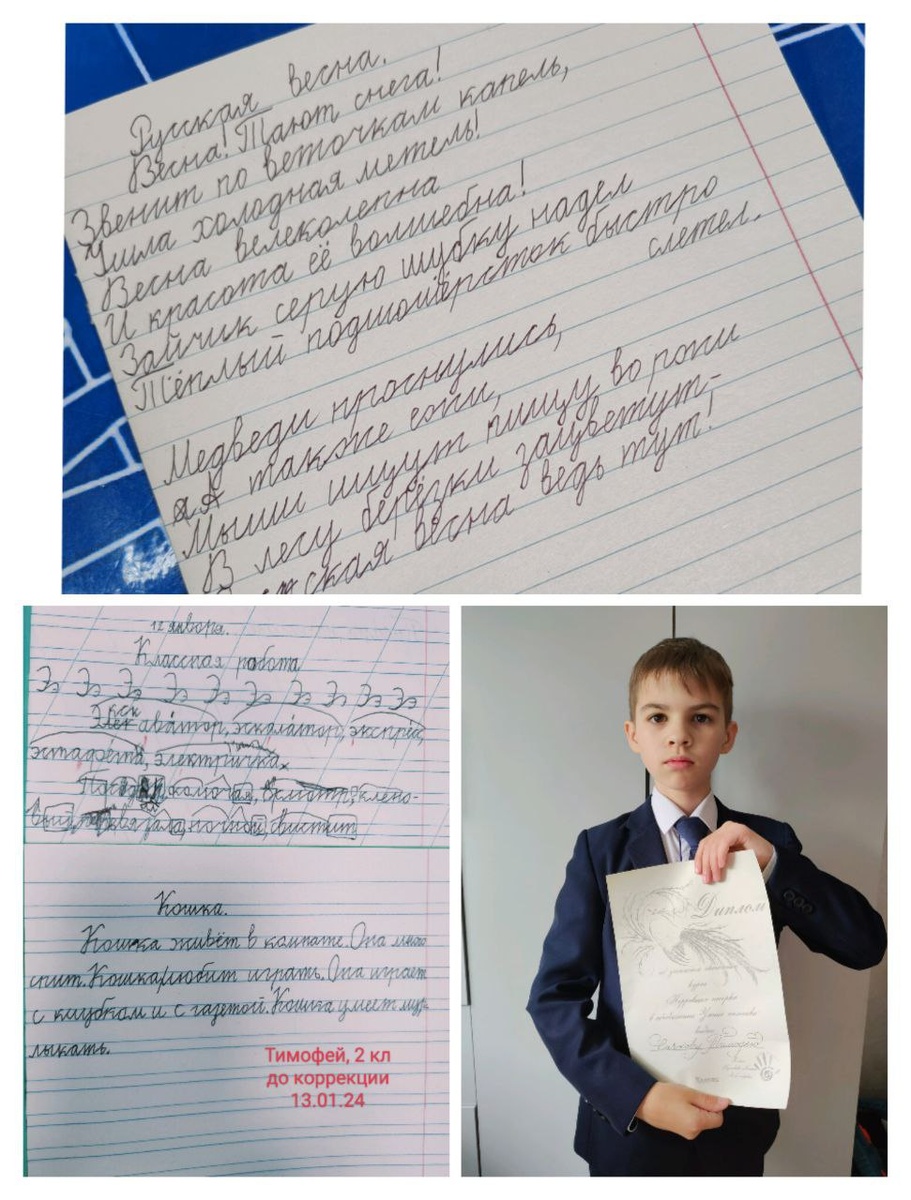 👨🎓ВЫПУСКНИК👨🎓 Тимофей, 3 класс Тимофей пришел ко мне на диагностику в январе 2024, но на коррекцию вернулся только в сентябре 2024. За совсем небольшое количество 🤏 занятий мы исправили главные ошибки-письмо овальных элементов по часовой стрелке❎, добавили наклон буквам. Тимофей потрясающий парень👍 На занятиях обнаружили талант поэта. Тимофей начал больше времени уделять стихам. В его копилке уже более 5 стихотворений. Это юный поэт, патриот своей Родины. Все его стихи о природе и любви ко всему, что он видит. Со стихами Сачкова Тимофея можно познакомиться по ссылке 👇👇👇 https://stihi.ru/avtor/timofei10 Тимофей, я желаю тебе творческих успехов 🍀 Горжусь своими учениками💪 Поддержим Тимофея❤️ #выпуск