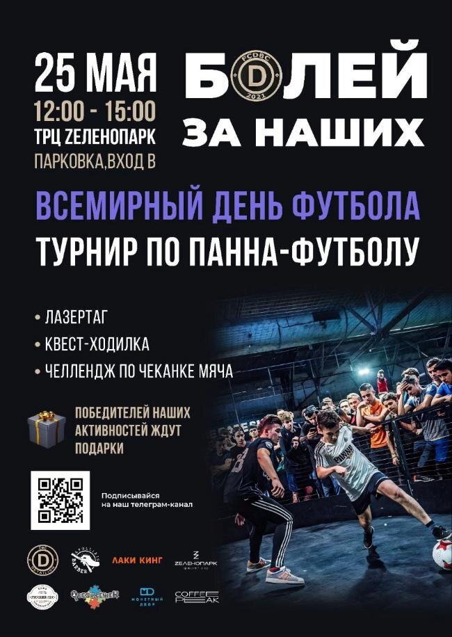 25 мая во всем мире отмечают Всемирный день футбола. Именно в этот день футбольный клуб DBC проведет первый городской турнир по панна-футболу в ТЦ Зеленопарк. Поучаствовать смогут все желающие, а победители получат подарки.