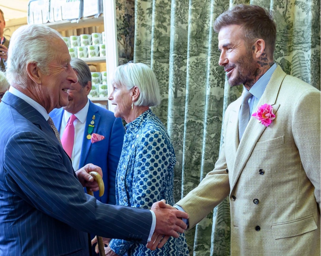 Главные садоводы Англии в сборе! Дэвид Бекхэм встретился с королём Карлом III и королевой Камиллой на престижной садоводческой выставке в