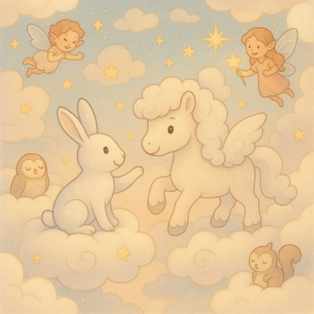 Жила-была в небе маленькая пони по имени Плюша. Она была не обычной — её копытца были мягкие, как пух, грива переливалась лунным светом, а крылышки были сделаны из облаков. Каждую ночь Плюша собирала самые пушистые облака, чтобы шить из них подушки для снов. Эти подушки она разносила по всему миру — тем, кому трудно было уснуть. Однажды она услышала, как маленький мальчик по имени Сева плакал в своей кроватке. Он потерял любимого мишку и не мог заснуть. Плюша тихонько опустилась к нему с неба, оставила подушку из лунного пуха и прошептала: