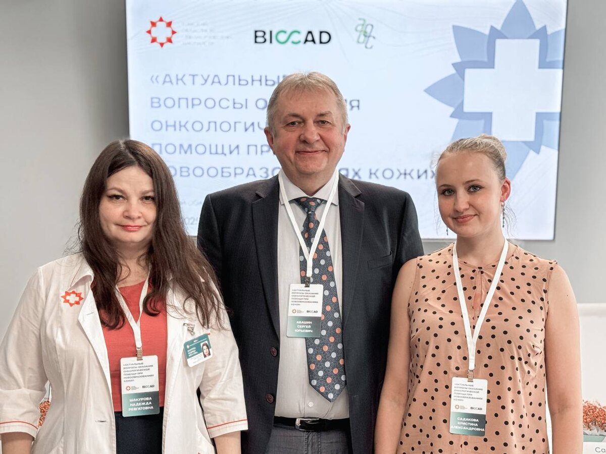 Меланома: фокус на раннее выявление и современные подходы к терапии. В Томском онкологическом диспансере прошла научно-практическая конференция «Актуальные вопросы оказания онкологической помощи при новообразованиях кожи». С приветственным словом на открытии мероприятия к участникам обратился главный врач Томского онкологического диспансера Максим Юрьевич Грищенко. «Диагностика и лечение кожных новообразований — это не только про технологии. Это про внимательность, про настороженность и про готовность принимать важные решения во имя здоровья пациента», — отметил Максим Юрьевич. С докладами выступили: — Абашин Сергей Юрьевич, д.м.н., профессор, врач-онколог, эксперт сети «ПЭТ-ТЕХНОЛОДЖИ» (г. Москва), рассказал о современных подходах к выбору терапии BRAF+ метастатической меланомы кожи. — Шакурова Надежда Ревгатовна, к.м.н., врач-онколог Томского онкологического диспансера, представила данные по применению лекарственной терапии метастатической меланомы. — Садакова Кристина Алексан