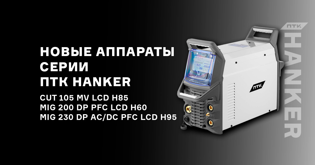Расширяем ассортимент электросварочного оборудования — три новых аппарата серии ПТК HANKER: многофункциональные сварочные полуавтоматы и высокопроизводительный аппарат плазменной резки. Надежность, мощность и расширенный функционал — все, что нужно для точной и эффективной работы с любыми металлами. Промышленные сварочные полуавтоматы с синергетическими настройками, несколько видов сварки, поддерживают работу пониженного напряжения сети (PFC). Аппарат воздушно-плазменной резки ПТК HANKER CUT 105 MV LCD H85 Аппарат промышленного класса для воздушно-плазменной резки. Идеален для точной и чистой резки металлов толщиной до 40 мм. Поддерживает работу от сети 220/380 В, оснащен системой пневмоподжига и цифровым LCD дисплеем. Аппараты доступны для заказа. Приобрести инверторы можно у официальных дилеров ПТК. Все технические параметры, особенности работы и фото аппаратов вы найдете в описании моделей на сайте.
