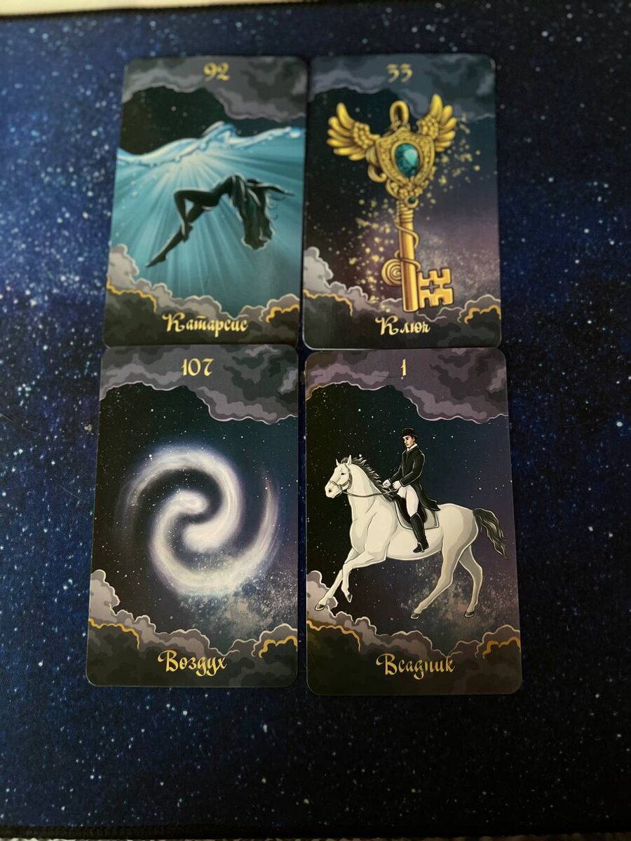 1: КАТАРСИС На этой неделе вам нужно дательно подготовиться к Новолунию 🌚 подумайте о всех методах очистки на физическом и духовном плане ( выше есть примеры как подготовится к Новолунию) обязательно сделайте уборку в доме. Обязательно «почистите» голову, много лишнего. 2:КЛЮЧЬ 🎉🎉🎉🎉 карта счастья и удачи! Обязательно принимайте все дары Вселенной , благодарите, расширяйте свой кругозор, обязательно будете честными . 3:ВОЗДУХ Вы засиделись на месте! Вам нужно действовать! Подумайте о «защите» так как есть резк нарваться на недоброжелателей 👹👺 Сила в вас есть однозначно, но вы ей не пользуйтесь. 4:ВСАДНИК Карта движения, на этой неделе у вас будут вести, так же могут приехать в гости друзья, родственники и т д. Положительная карта. Слушайте интуицию