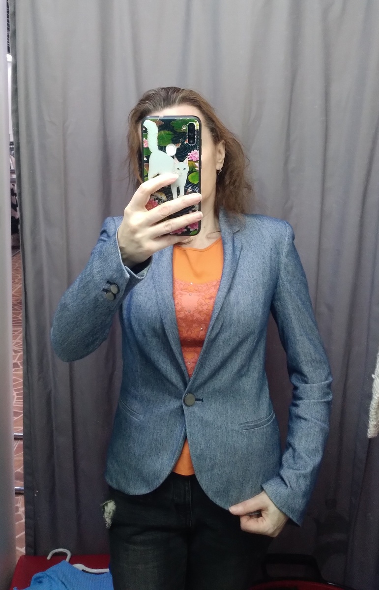 Здравствуйте, сегодня обзор из очередного Столичного гардероба, всё можно было купить со скидкой 80%. Цены пишу полные. Серо-голубой жакет в тонюсенькую ёлочку. Zara, 1300 рублей. Белоснежный кардиган с карманами и навесными петлями. Очень лёгкий и почти ажурный, его можно накинуть скорее от солнца чем от прохлады). Без состава. Если бы не рисунок я с джемпером слилась бы, цвет почти точно в тон моей кожи. Симпатичный орнамент, хотя немного странные толстые олени на смешных лапках. Это Шейн, видят китайцы так оленей)). Очень плотный трикотаж. Длинный прямой жакет на подкладке. Без состава. Однобортный жакет с накладными карманами. Прямая модель, есть подкладка, а главное это очень красивый малиновый цвет и мягкий вельвет. Яркий жакет от Зары. И ещё один жакет с карманами. Светло- бежевый фон с темно-синим рисунком и розовыми полосками. Блузка с небольшими спущенными рукавами, снизу кулиска с завязками. На жару самое то. Светлый и тонкий хлопок. Даже к цене не придраться. Лофе