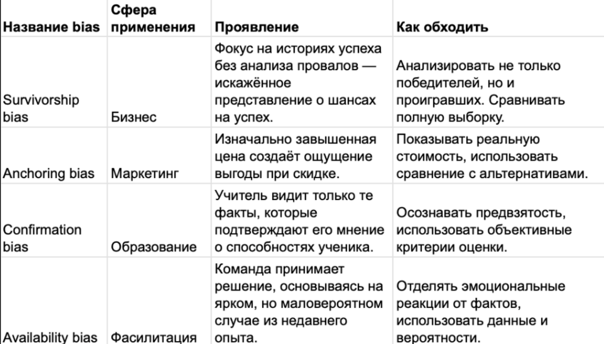 Bias есть у всех. В этом, кстати, есть и плюс. Поняв, где ты склонен ошибаться — ты уже ошибаешься чуть менее автоматически. А это уже начало.