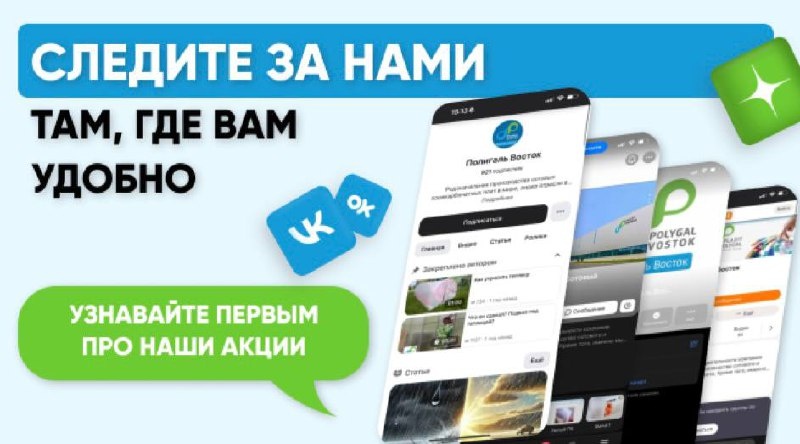 Будьте в курсе: Подпишитесь на соцсети Полигаль Восток! 🚀 Подписывайтесь на наши соцсети и получайте самую актуальную информацию о наших продуктах, акциях и новостях! Мы делимся полезными материалами, отвечаем на вопросы и всегда рады общению. ВКонтакте Одноклассники Рутуб YouTube Telegram Дзен Не пропустите ни одной важной детали! Подписывайтесь и будьте в курсе всех событий! 😉 #ПолигальВосток #Полигаль #новости #соцсети