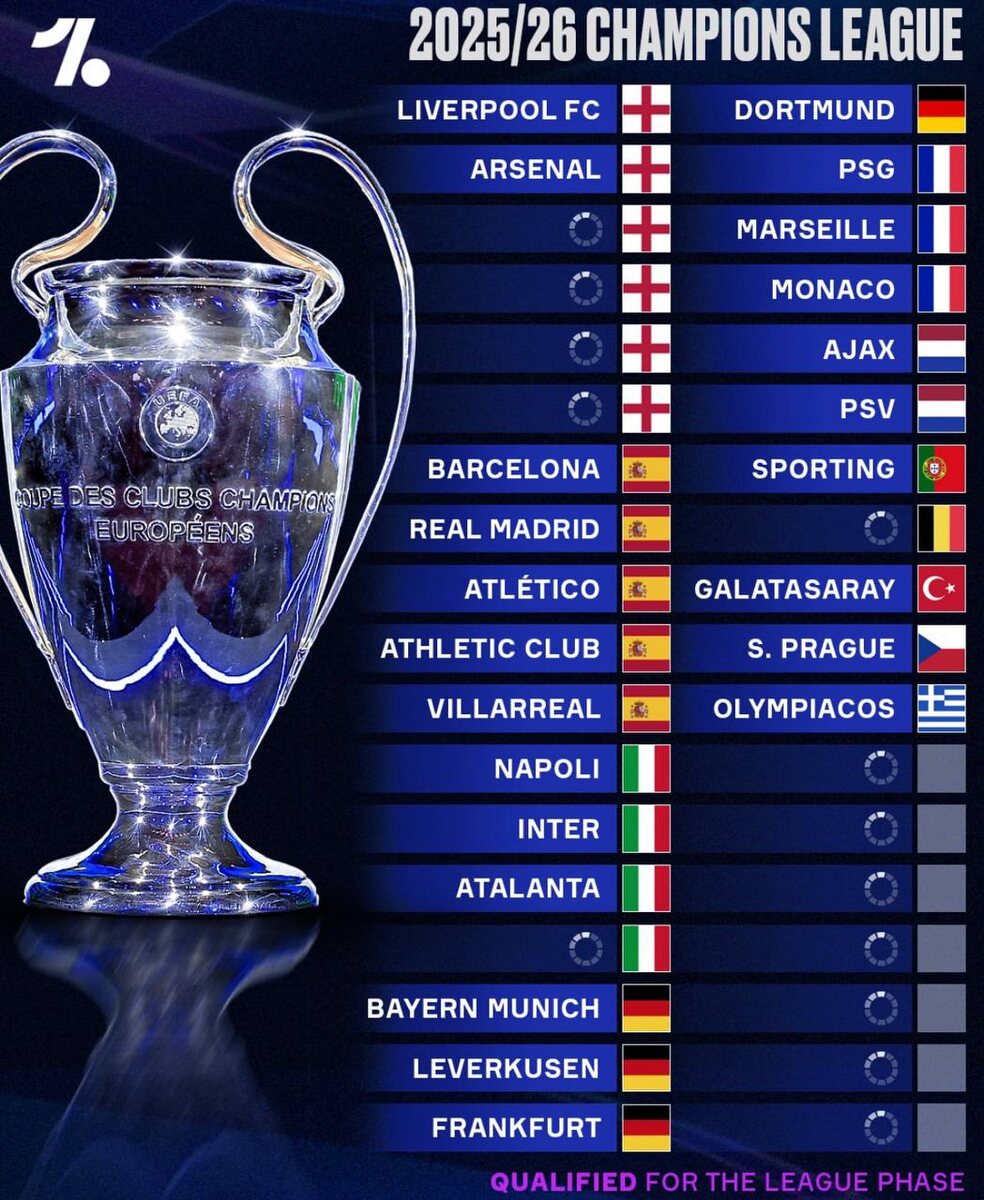 Обновление по командам на следующий сезон Лиги Чемпионов