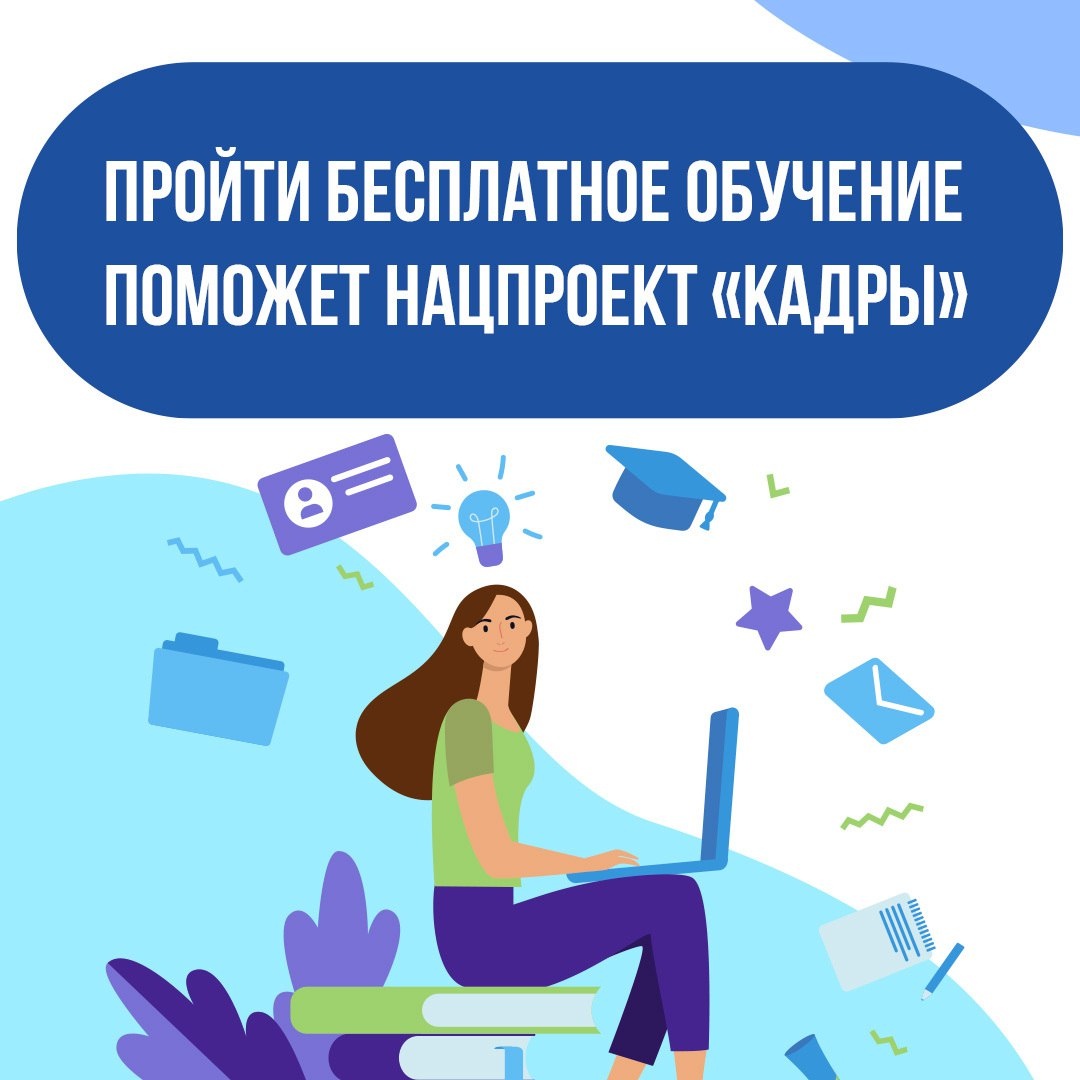 🔍 Хотите повысить квалификацию или освоить новую профессию? У вас есть такая возможность благодаря федеральному проекту «Кадры». Подробности о том, кому доступно бесплатное обучение и как стать участником программы — в наших карточках 🗒