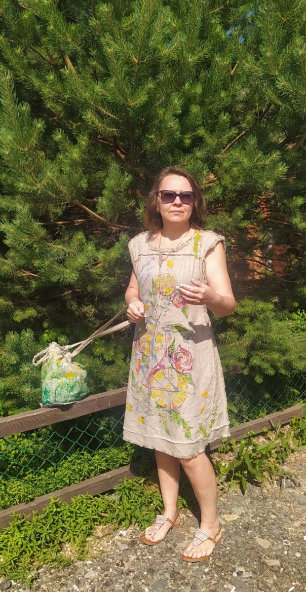 Приветствую всех на своём канале! Такого вида одежды в моём гардеробе почти нет. Не люблю я платья, да и они мне "платят" (может это от слова "платье"? 😄😄😄) тем же. И если брюки и джинсы мне подобрать по фигуре совсем не сложно, то с платьями всегда напряжёнка 😏🥺. Но, видимо, иногда всё же во мне просыпается девочковость , и тогда мне нужно облачить себя исключительно в платье , во что-то другое я не согласна. Для таких случаев у меня есть два платья 1. Появилось оно у меня давно, лет 6-7 назад, ещё до моего увлечения сх. Соответственно, не является товаром бывшим в употреблении. Мне его шила "Марья искусница " на заказ. Стоило оно совсем не дёшево. Ручная работа никогда не стоит дёшево. Сшито оно из небелёного льна. По мотивам романа Рэя Брэдбери "Вино из одуванчиков". А в подарок мастерица прислала мне вместе с платьем сумку , и получился такой душевный ансамбль. И понятно, что это моё любимое платье. Хотя, все вещи, находящиеся в моём гардеробе, у меня, любимые 😍) 2. Н
