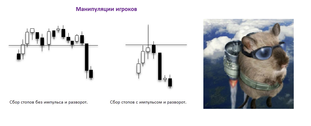 В статье посвященной отскокам я написал, что не очень люблю торговать классические отскоки, потому, что на рынке много манипуляций, когда крупные игроки набираю себе позиции за счет остальных, а затем разворачивают цену. И не очень хочется чувствовать себя хомяком, стопы которого просто использовали.