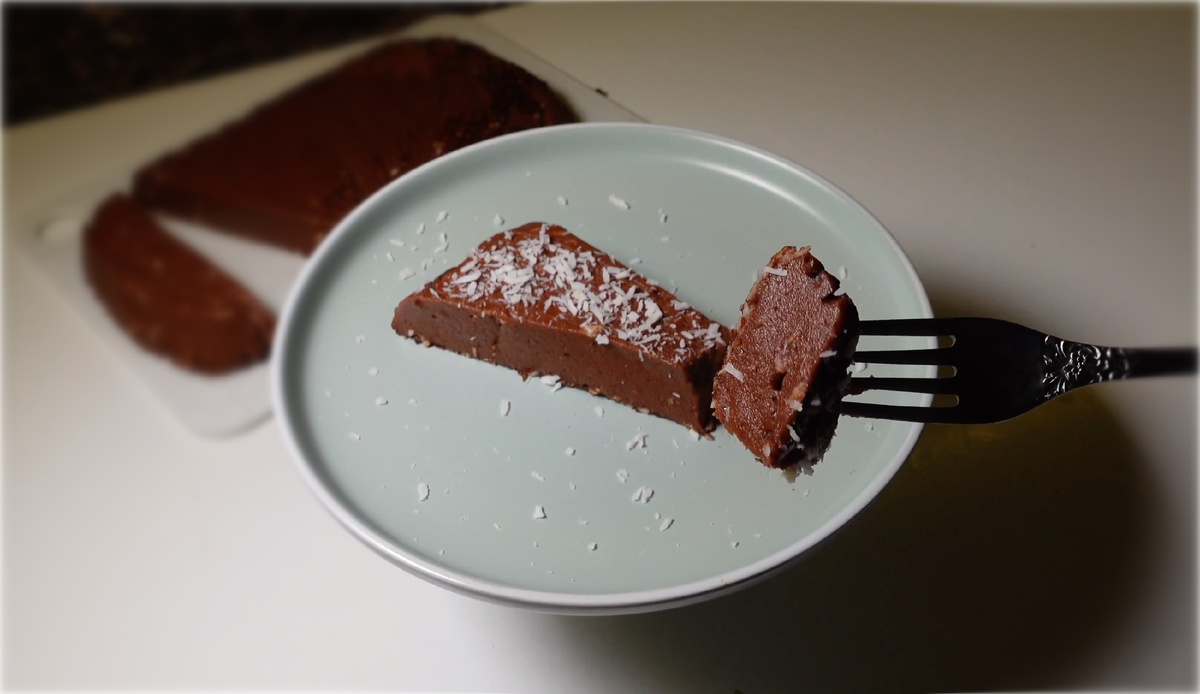3. Форму застилаем пищевой пленкой и на дно присыпаем чуть-чуть кокосовой стружки, выливаем нашу банановую смесь и сверху тоже посыпаем кокосовой стружкой, накрываем пищевой пленкой в контакт и убираем в холодильник до застывания, примерно 3-4 часа!