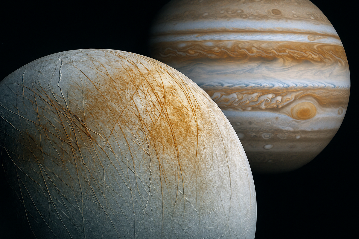 Среди всех миров Солнечной системы Европа — одна из самых многообещающих в поиске внеземной жизни. Маленький спутник Юпитера давно привлекает внимание планетологов, и не только потому, что его поверхность покрыта ледяной коркой. Гораздо важнее то, что под ней. На основании массы и объёма Европы можно сделать вывод: примерно 100 километров верхнего слоя — это вода. А всё больше накопленных данных говорит в пользу того, что под этой толщей скрыт глобальный океан, возможно, солёный. Такой океан не просто удерживается подо льдом — он может взаимодействовать с поверхностью. А это уже совсем другой разговор: значит, условия для жизни теоретически возможны. Недавние наблюдения уже показали следы водяного пара над Европой — вероятно, от гейзеров, вырывающихся из глубины. Но одного пара недостаточно. Нужны прямые химические доказательства того, что жидкая вода выходила на поверхность недавно, а не миллионы лет назад. Здесь в игру вступает космохимия — и особенно один необычный минерал: гидрогал