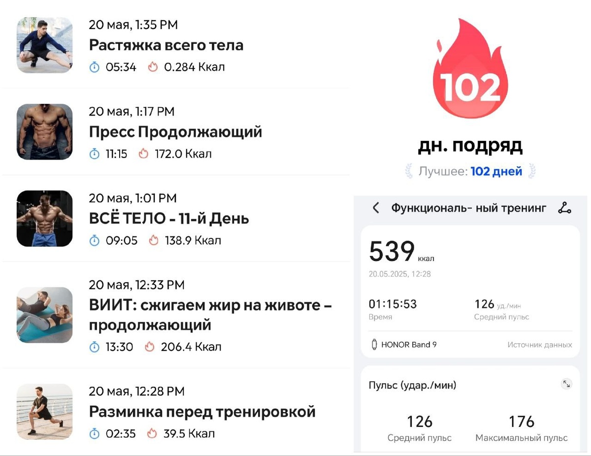 🏋️♂️ Упражнения. День 102. 🗓 20.05.25 💪 День ведения блога: 132 ⏱ 01:15:33 🏄♂️ 539 ккал 😰 Что-то вчера меня морально покосил пол и оконщики... 💪 Но я взял себя в руки и сделал упражнения, теперь можно идти дальше пол ковырять! ✍️ Рассказывайте о своих достижениях в коментах! #упражнения_дома 😎 Roman Legas | Life