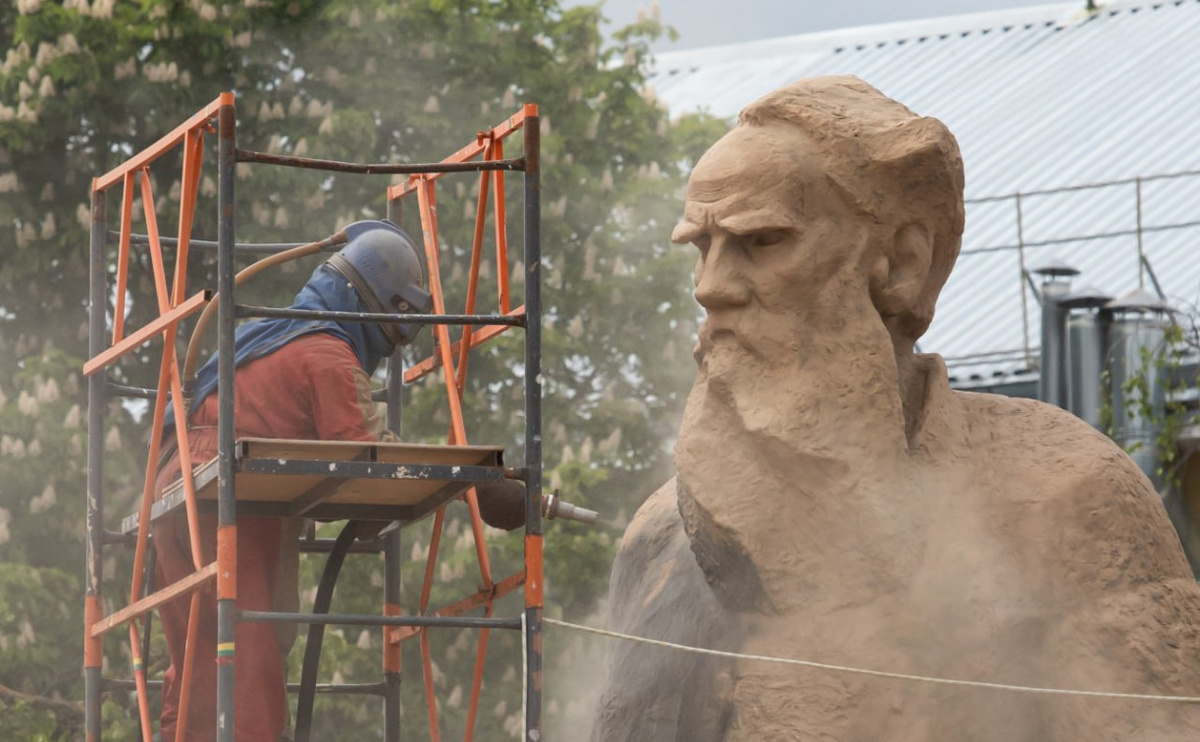 Памятник на проспекте Ленина готовят к покраске в рамках ремонта одноименного сквера. Рабочие выстроили леса, окружив со всех сторон огромную фигуру Льва Николаевича. С помощью пескоструйного оборудования с памятника снимают многолетнюю грязь и старую краску. Отметим, что новый тон писателю очень идет! В центре Тулы продолжается ремонт сквера Льва Толстого, который стал победителем рейтингового голосования в прошлом году. В общественном пространстве проведут комплексное благоустройство. Обещают, что скоро будет вот так: Читайте полную версию статьи на сайте MySlo.ru: