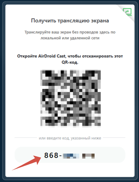 Открываем приложение и вводим код с устройства на который хотим транслировать