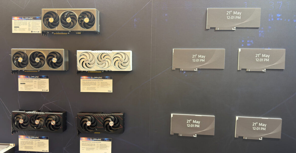 Представители компании Sapphire опубликовали в социальной сети X (заблокирована в РФ) снимок одного из своих стендов на выставке Computex, который явно намекает на презентацию новых видеокарт во время завтрашнего мероприятия AMD, сообщает VideoCardz. На стенде подготовлено место, как минимум, для пяти новых моделей видеокарт AMD Radeon RX 9060 XT. Судя по размерам, компания покажет варианты с трёх- и двухвентиляторными системами охлаждения. Источник изображения: Sapphire Кроме этого, Sapphire удивила журналистов ComputerBase, представив на выставке видеокарты и материнские платы со скрытым разъёмом питания GC-HPWR — это та же конструкция, что используется компанией Asus в экосистеме продуктов BTF (Back-to-the-Future), только называется по-другому — Phantomlink. Sapphire оснастила таким коннектором видеокарту Radeon RX 9070 XT в исполнении Nitro+ и материнскую плату Nitro+ X870EA WiFi Phantomlink. Источник изображения: ComputerBase Помимо этого, на выставке был представлен большой ассор