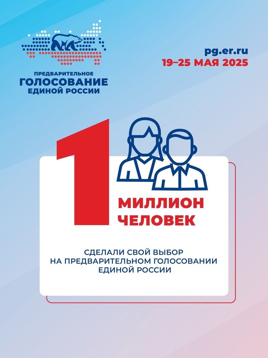 ✅ По итогам первого дня предварительного голосования Единой России свой выбор уже сделали более миллиона избирателей