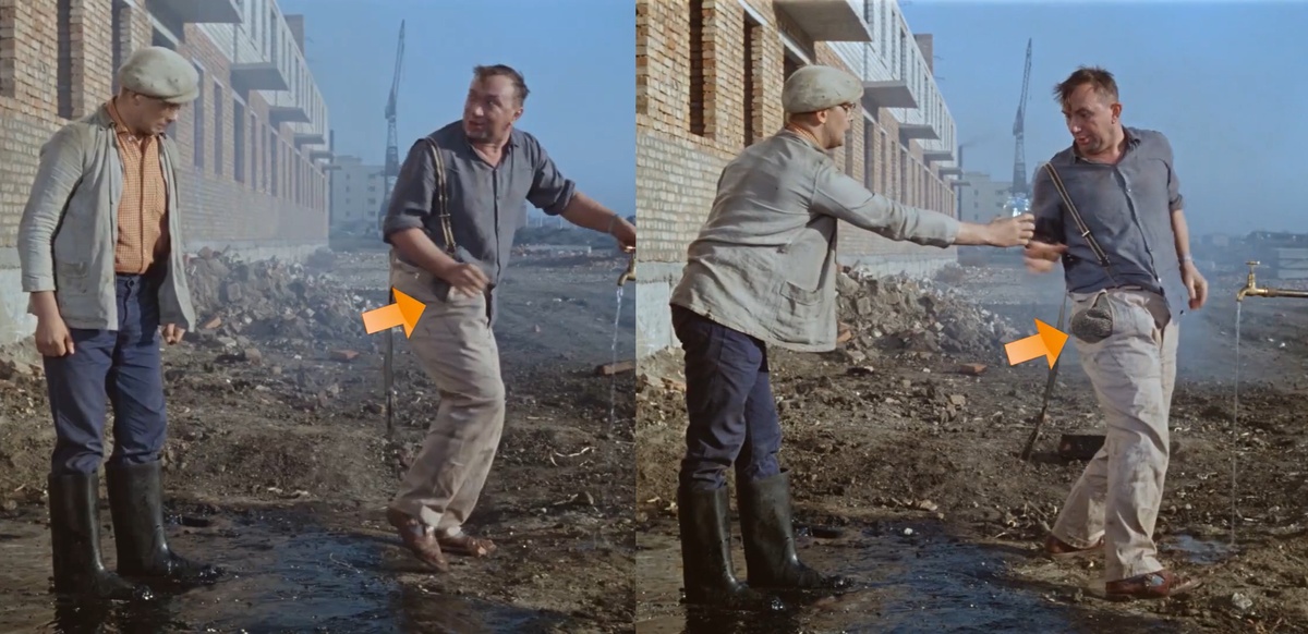 Даже любимая советская классика не застрахована от мелких ошибок 🎞️. Кто-то воспринимает это как недочёты, а кто-то — как ещё одну забавную грань любимого фильма. Сегодня поговорим о самых смешных, странных и неожиданных ляпах в "Операции Ы". 📼 Убрана полностью, потом торчит наполовину. Было одно — стало много. Кадр явно снимался с добавками 🎬 Начинают двигаться ещё до того, как Шурик упал. То у Феди часы с ремешком, то у Шурика. Смотрят в одну сторону — потом в другую. Наверное, улетали и вернулись. Когда Федя вылезает из бульдозера, в цементе только кисти. Но уже в следующем кадре — руки вымазаны по локоть. На полу в одной сцене — 4 слоя обоев, хаотично перекрещённых. А в следующем кадре — они уложены ровно. Когда Шурик был в комнате, студенты успели расписать всё вокруг: пол, двери и даже, кажется, стены. Причём, судя по плотности каракулей — делали это не один раз. До и после — это как две разные сцены. Торшер, телефон и крест на стене явно сменили своё положение. Когда Лида и Ш