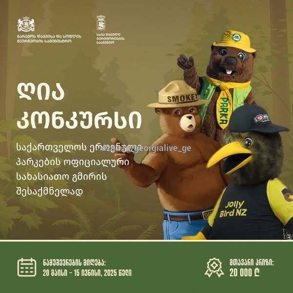 Агентство охраняемых территорий проводит конкурс на создание дизайна маскота национальных парков Грузии Это может быть реальное животное или вымышленный персонаж. Поделись своим видением, которое лучше всего представит характер национальных парков Грузии. "Характерный герой станет главным символом национальных парков, который укрепит бренд, углубит экологическое сознание, поощрит экотуризм и создаст эмоциональную связь между природой и обществом. Принять участие в конкурсе могут как отдельные дизайнеры и иллюстраторы, так и команды (не более трех человек), независимо от возраста и профессионального опыта" 🗓️ Прием работ: 20 мая – 15 июня 🏆 Главный приз: денежное вознаграждение 20 000 лари Подробная информация о конкурсе и положение на сайте агентства https://tinyurl.com/y5r74bjz