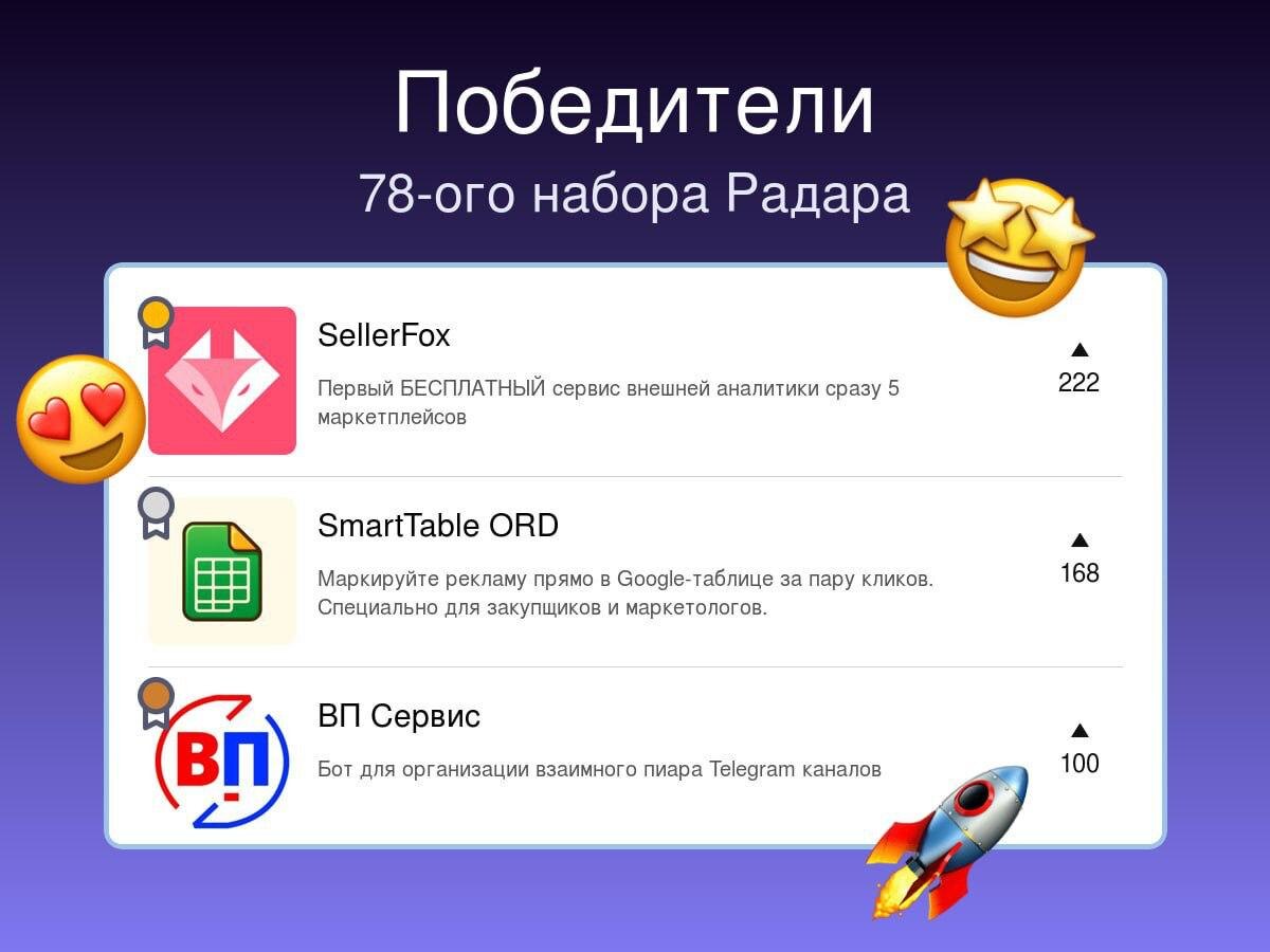Недавно я просил вас поддержать наш проект SellerFox на ProductRadar. Спасибо всем, кто не прошёл мимо — мы заняли 1 место и стали продуктом недели 🏆 Теперь идём дальше — боремся за продукт месяца. SellerFox — это не просто сервис, это бесплатная аналитика по 5 маркетплейсам сразу. Без подписок, без ограничений. Просто зашёл — и работаешь. Я знал, что людям это нужно. А теперь вижу по цифрам — вы это реально цените. Спасибо за доверие 🙌 Если ещё не пробовали — самое время зайти и потестить здесь Marketplace_biz - отдай свой буст каналу