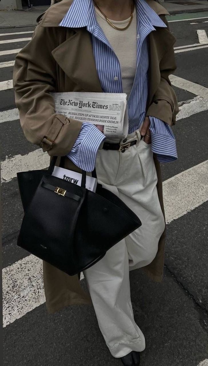 - Кроп-топ + рубашка оверсайз + тренч без рукавов + макси-юбка