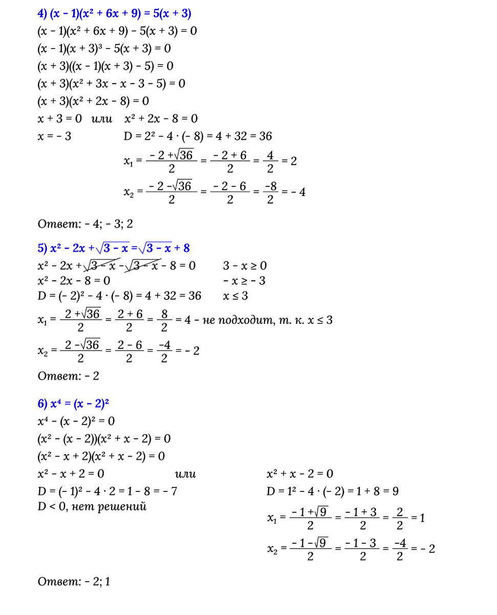 В уравнении №5 очень популярная ошибка, что ученики просто сокращают корни и не находят ограничения. Запомните, если у вас переменная стоит под корнем или в знаменателе, вы должны найти