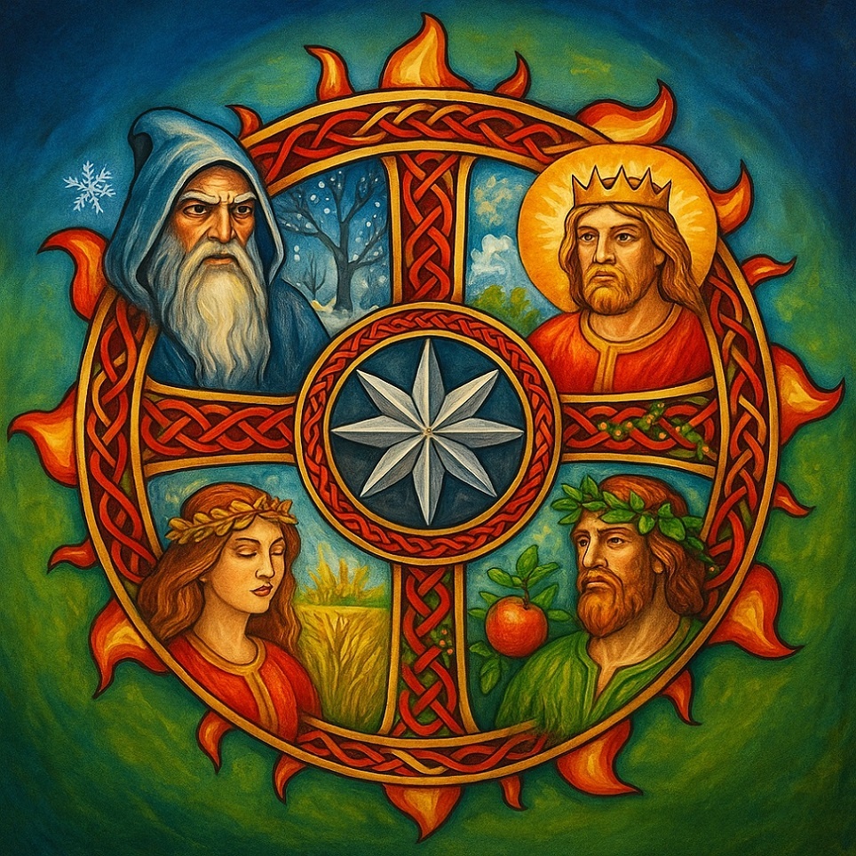 Славянин не говорил «январь» и «май» — он слышал, как под подошвой прокатывается невидимый обруч Года. Каждая спица звучала по-своему. И главное: на краю шестерёнки стоял бог, готовый любое время года повернуть в нужную сторону, будто хранитель железной дороги. Без этих дивных дежурных колёсный механизм заклинит, и вместо урожая — бурьян, вместо свадеб — поминки.