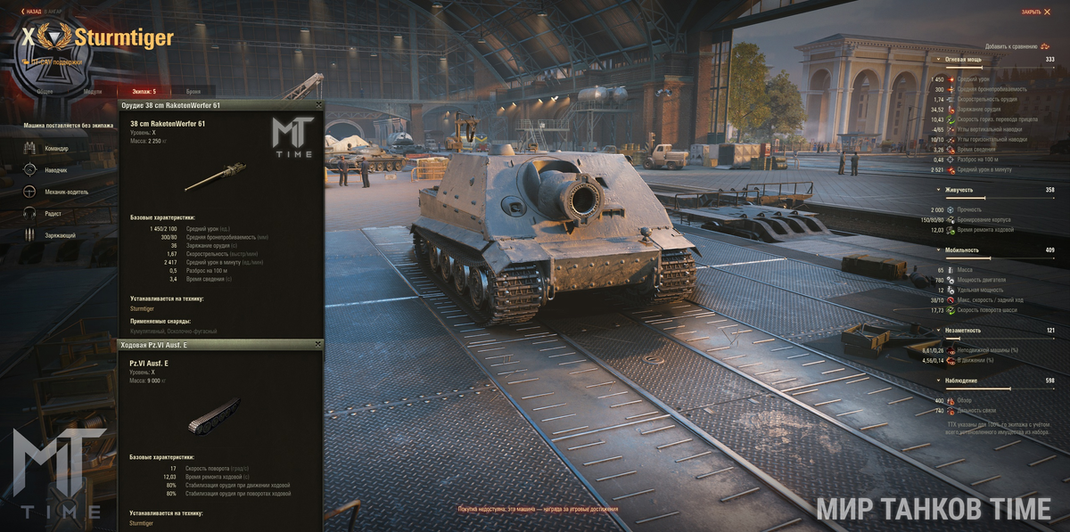 Масса 3500т и урон 900. Maus тут точно закомплексовал. А вот альфа на фоне штурмтигра выглядит смешной, однако количество ХП в 22500 явно вызывает уважение. Полные ТТХ ниже
