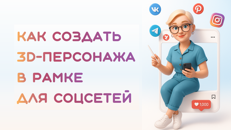 Формат: 3D мультяшный персонаж, стилизация под Disney/Pixar, в Instagram/VK-рамке, вертикальный формат.