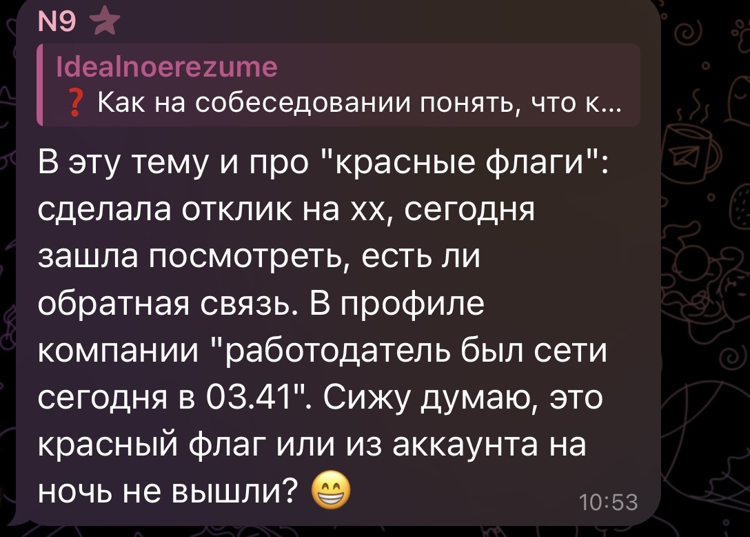 ✅Рекрутер пишет вам в мессенджер в 23:45 с вопросами про опыт — и ожидает немедленного ответа.
