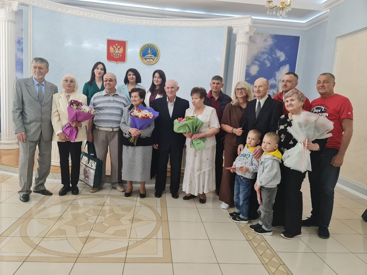 В отделе ЗАГС Тахтамукайского района состоялся традиционное торжество, посвященное международному дню семьи – прекрасному и особенному празднику, который отмечается во всем мире. В этот весенний день в торжественной обстановке чествовали юбиляров семейной жизни, проживающих в поселке Яблоновском. Бриллиантовые юбиляры - семья Алехиных Анатолия Ивановича и Марии Федоровны. Вот уже 60 лет рука об руку они идут по жизни. Их история любви началась еще со школьной скамьи в одной из деревень Воронежской области. Анатолий Иванович работал металлургом, бурильщиком подземных и открытых работ. Мария Федоровна - бухгалтер. У них две дочери, внук и два правнука-близнеца, которые живут в Сибири. В этот день вся семья и потомки Алехиных приехали поздравить своих прекрасных юбиляров. Яковлевы Владимир Степанович и Тамара Николаевна прожили вместе 55 лет и отметили изумрудную свадьбу. Крепки и красивы отношения супругов, подобно изумруду, который является символом искренности, надежности и мудрости. Ю