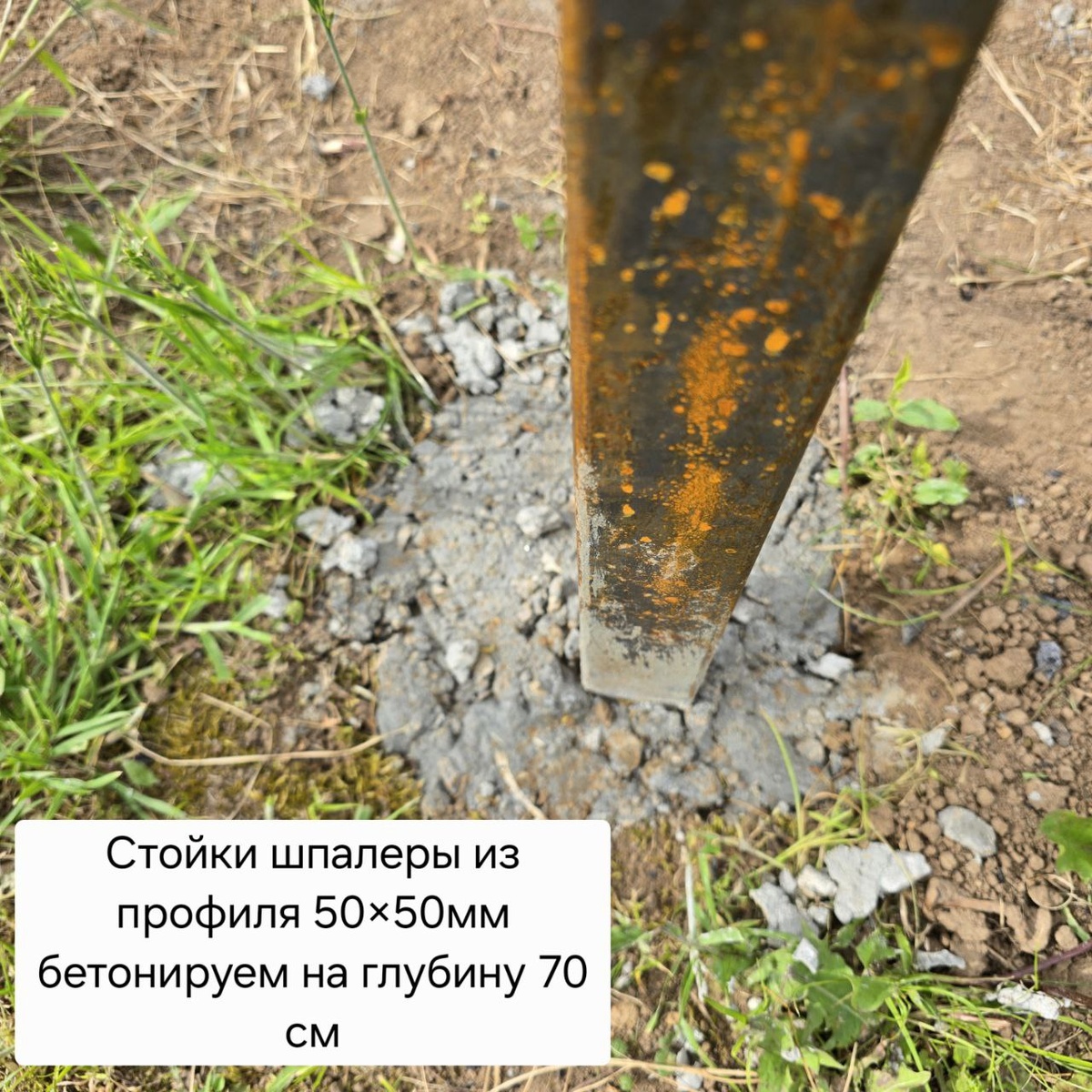 🏠ДАЧА🏡 📅Сегодня с помощниками продолжили установку новой шпалеры на дачном участке. ⚠️Двухполосная шпалера по длине составляет 6 метров, расстояние между полосами (рядами) - 70 см, расстояние между стойками 3 метра, высота стоек 220 см. ✅️Для стоек используем металлический профиль 50×50 мм и толщиной 2 мм, на обвязку стоек используем профиль 50×25 мм, на расстоянии от земли в 60 см привариваем арматуру диаметром 10 мм, которую ещё дополнительно привариваем к забитым в землю столбикам 50×25 мм, чтобы арматура не провисала. ✅️Бетонировали стойки на глубину 70 см и спустя сутки начали сварочные работы. ✅️После монтажа покрасили конструкцию краской-грунтом зелёного цвета в 2 слоя. Теперь дадим ей просохнуть и продолжим оборудовать шпалеру регулируемыми тросами, о чём расскажем в ближайших постах, а пока... 🤗Будьте с нами и делитесь с друзьями❗️👇 Дачные соседи | Сад | Огород🍒🌼🥬 #дача #шпалера #виноград