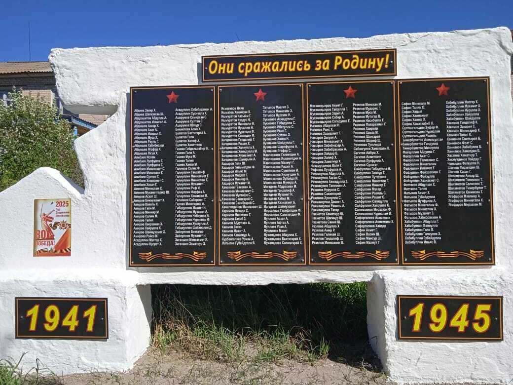 80-летие Победы в Великой Отечественной войне отпраздновали по всему Аургазинскому району – в каждом селе, в каждой маленькой деревушке. Во многих из них готовились основательно – воздвигали новые и реставрировали старые памятники, проводили субботники. Так, в деревне Старокузяково Ишлинского СП обновили мемориал участникам ВОВ. Накануне Дня Победы состоялось его торжественное открытие. Еще в апреле кузяковцы традиционно собрались на субботник по очистке кладбища. Около 40 человек трудились здесь, вывезли четыре тележки спиленных кустов и деревьев. Порядок, безусловно, навели по всей деревне. Имена 278 кузяковцев, ушедших сражаться с фашистами, до реконструкции едва читались – время ничего не щадит. Оно почти стерло письмена, но память не стереть… Мемориал расположен на территории бывшей школы, прямо за баннерами летчику-испытателю Рафаэлю Сайфуллину и участнику СВО Андрею Дмитриеву, а также стелой «Я люблю Кузяково». Напомним, все эти достопримечательности появились силами самих сельч
