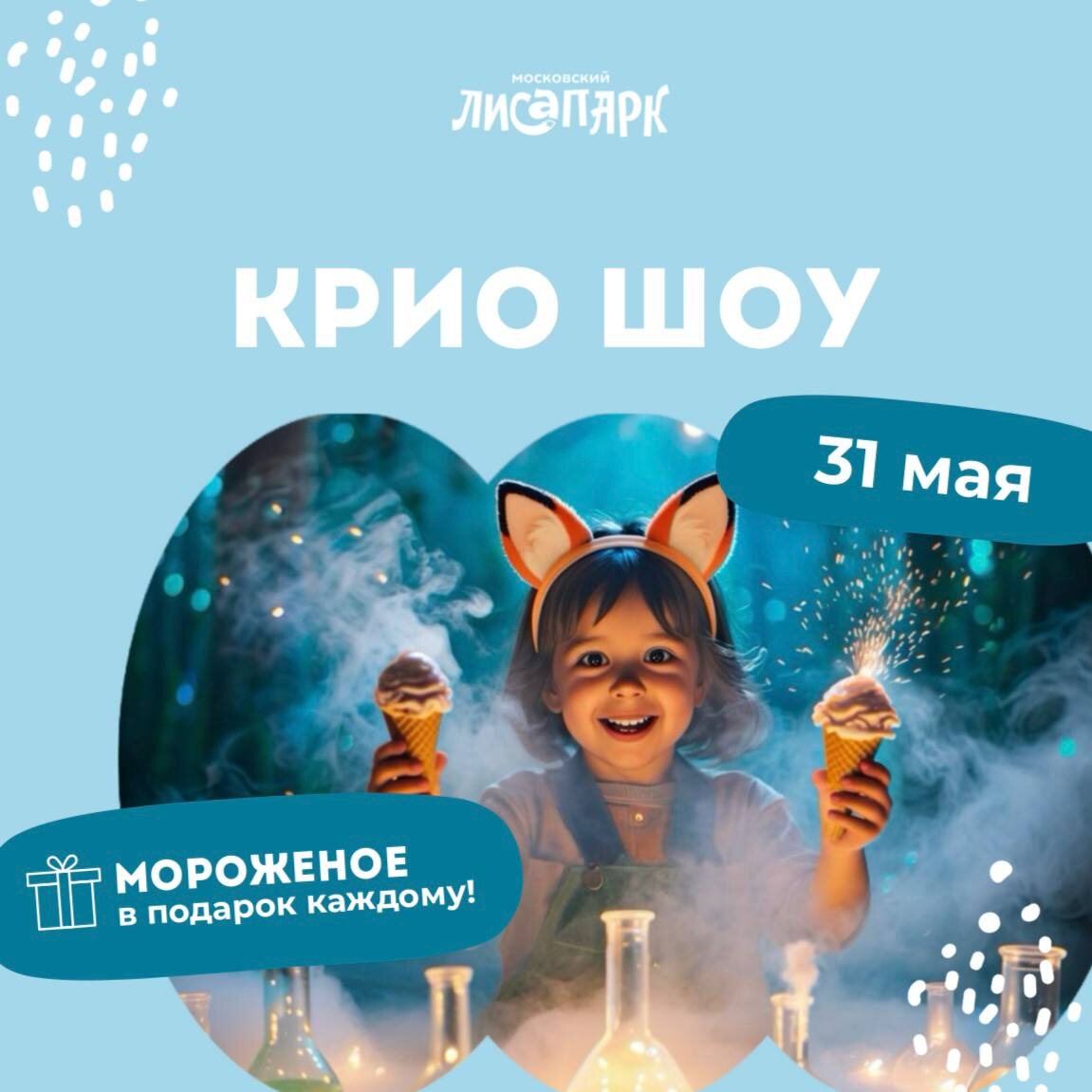 Лето не за горами, пора строить планы на главный праздник детства! 🕺🏻🥳 Вас ждёт большая пушистая программа в честь Дня защиты детей 31 мая/ суббота ▫️Весь день – сказочные спектакли в театре ЛисаПарка 🎫Перейти в афишу театра ▫️15:00 – Крио-шоу с мороженым в подарок 🔮Хочу на необычное шоу! ▫️16:45 – Дискотека «Встречаем лето!» Бесплатно для всех гостей парка ▫️В течение дня – активности на летней веранде Завтра поделимся праздничной программой на 1 июня, следите за нашими новостями😉