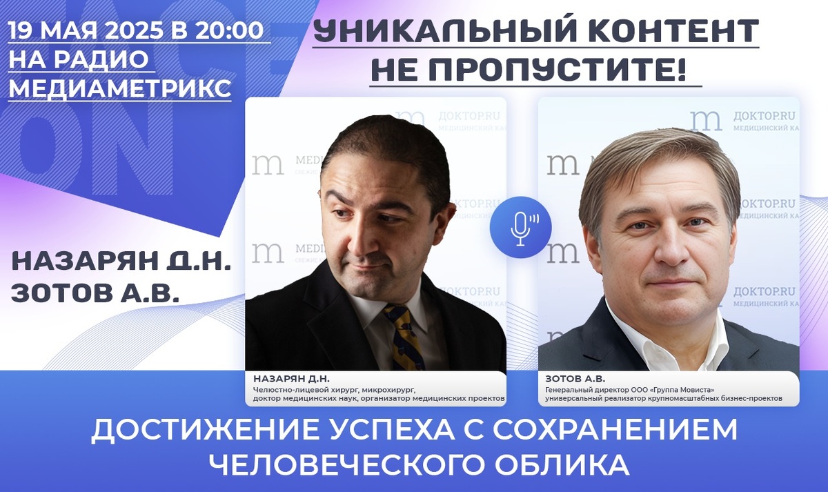 В понедельник 19 мая основатель NKclinic Давид Назарян провёл прямой эфир с Алексеем Зотовым на тему «Достижение успеха с сохранением человеческого облика». А.В. Зотов является генеральным директором ООО «Группа Мовиста», которая в данный момент внедряет беспилотные трамваи в Свердловской области. До этого Алексей Зотов работал над строительством МКЖД. Это беседа с человеком, который знает, как реализовывать крупные бизнес-проекты и достигать успеха в разных областях, оставаясь верным своим принципам и ценностям. Встреча получилась очень вдохновляющей, смотрите её ниже: Ведущий — основатель NKclinic, челюстно-лицевой хирург Д.Н. Назарян, доктор медицинских наук, эксперт в области сложной реконструктивной хирургии, который привнёс в медицинскую практику инновационные подходы. В рамках программы Face On с доктором Назаряном он проводит прямые эфиры с экспертами из сферы медицины, бизнеса и личной эффективности. Заполнить форму на сайте Позвонить администраторам по номеру +7 (495) 930-15-