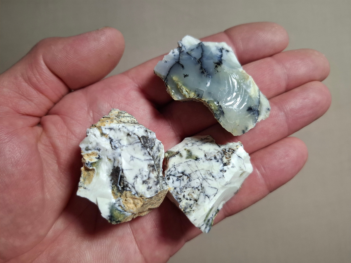 Поисковые рейды в минералогических регионах России пока ещё не идут полным ходом: кое где ещё лежит снег, а если его нет, то идут холодные весенние дожди. Посему и пополнение моей коллекции происходит не так активно, как хотелось бы. Однако кое-какие минералы я всё же заказал из дальних краёв, и на днях забрал пару посылок с почты. Первыми стали три небольших Опала с Новотемировского местонахождения. У меня уже есть оттуда несколько образцов: жёлтый, зелёный и чёрный. А вот теперь и белые подъехали Следом пришёл лот из трех небольших фрагментов горной породы, покрытых щеточками Азурита. На этот раз со Среднего Урала, месторождение Бакр-Узяк Вместе с ними прибыл и шикарный образец Уральской Северокалиновской Яшмы - большая полированная пластина с великолепным рисунком За все эти образцы хотелось бы выразить благодарность Алексею Ч. Благодаря ему эти минералы теперь радуют мои глаза! Далее... Из других мест, не менее далёких, ко мне пришла другая посылка, в которой было четыре камушка. П
