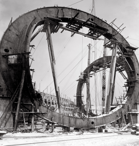 День добрый! Перед вами пятая часть из подборки фото, посвященной строительству аэродинамических труб в различных странах. Сегодня завершаем разговор о бывшей главной аэродинамической трубе AWT, лабораторного комплекса Глена в США, принадлежащего NASA. В этой статье Я поделюсь с Вами фотографиями монтажа основных систем и процесса демонтажа объекта. 1. Установка угловых колец трубы. 2. Сварка стальных частей трубы. Видны внутренние леса, приваривавшиеся прямо к внутренней части трубы. 3. Разборка внутренних лесов после завершения сварочных работ. 4. Завершение сборки деревянного!!! пропеллера для основного осевого вентилятора аэродинамической трубы AWT. 5. Монтаж фибергласовых плит утеплителя в нижней части трубы. 6. Монтаж панелей утеплителя с торца трубы. 7. Монтаж дополнительной насосной станции в 1950х годах. От этих работ сохранилось как минимум 3 фотографии. Что интересно, монтаж дополнительных систем велся прямо под существующей трубой. 8. Демонтаж аэродинамического комплекса.