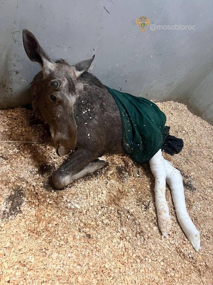 🦌Новости о нашем мальчике: на задние ноги лосёнку наложили временный гипс, обработали раны